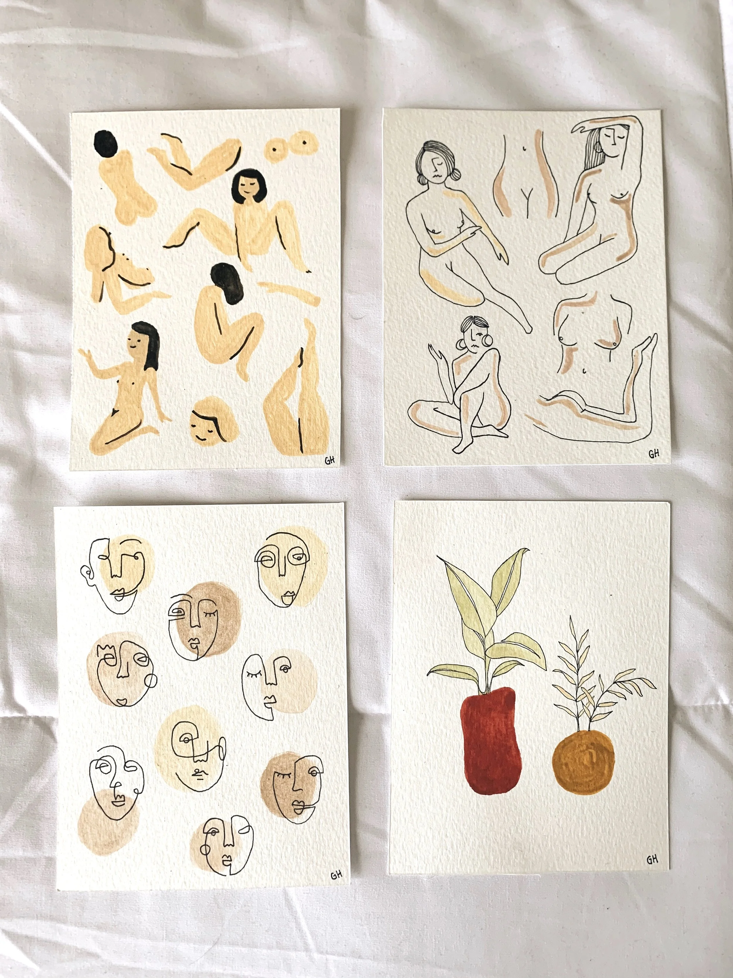 In my spare time, I explore shapes, colors, organic materials, and more through a variety of mediums—graphite, pen, watercolor, and linocut carving + printing. Everything I do as an artist informs my professional work and helps me to continuously evolve as a designer.